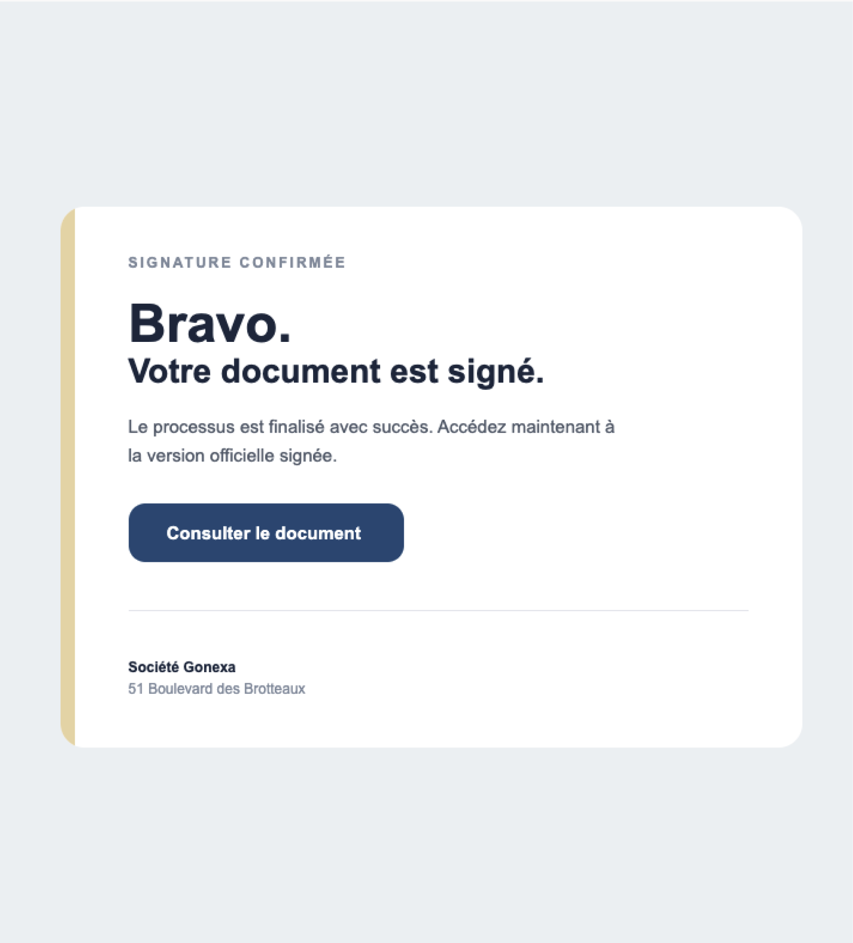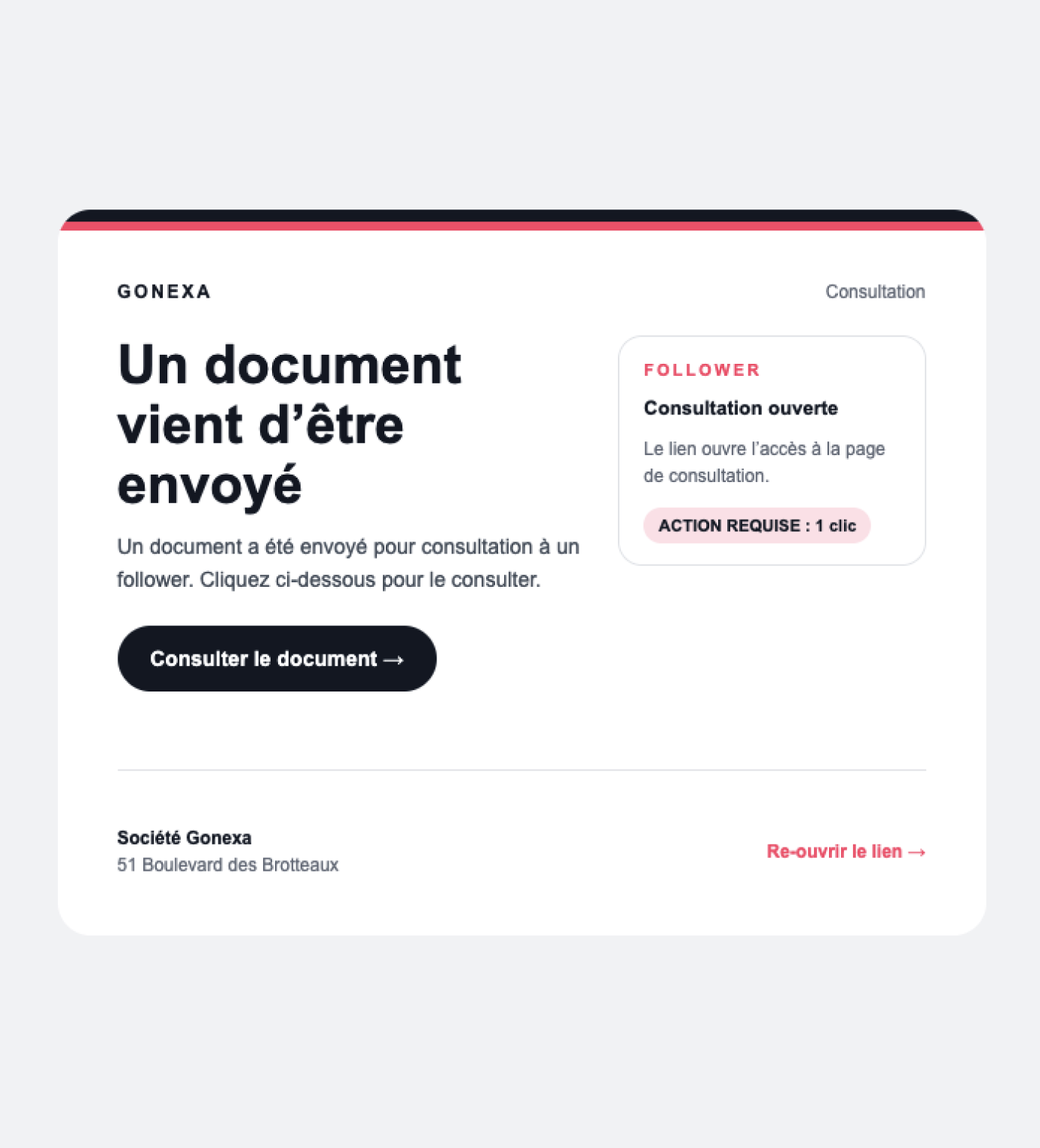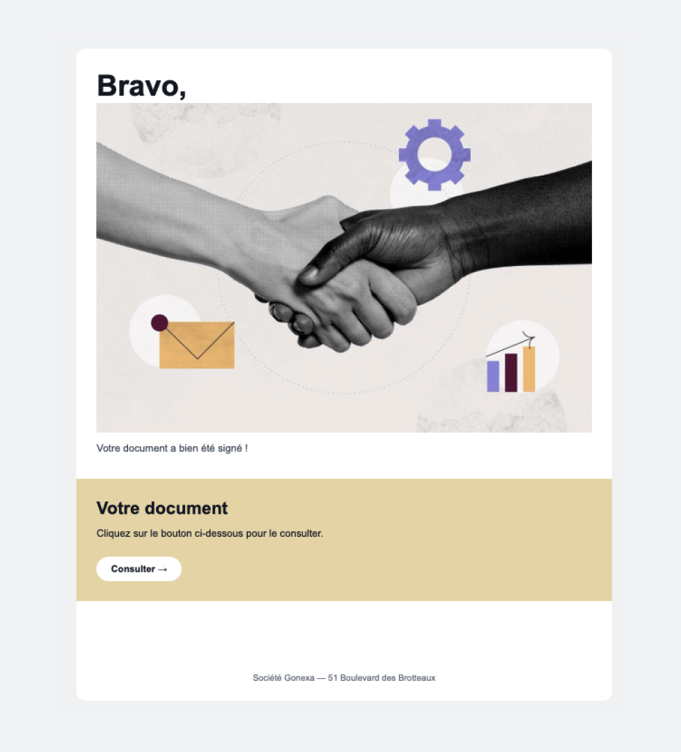 <div style="text-align: left;"><span style="text-wrap: wrap;"><span style="color: rgb(51, 51, 51);"><span style="white-space-collapse: preserve;">This email was sent by</span></span></span> <span style="text-wrap: wrap;"><span style="color: rgb(51, 51, 51);"><a href="mailto:{{{Recipient.Email}}}"><span style="text-wrap: wrap;"><span style="color: rgb(51, 51, 51);"><span style="white-space-collapse: preserve;">{{{Recipient.Email</span></span></span></a>}}}.</span></span> </div><span style="color:#333333;"><span style="white-space:pre-wrap;">If you prefer not to receive this type of email, you can <a href="https://lien-vers-desabonnement.com">unsubscribe or manage your email preferences</a>.</span></span> <div style="text-align: left;"><span style="color:#95a5a6;"><span style="white-space:pre-wrap;">Gonexa | 51 Boulevard des Brotteaux, 69006 Lyon</span></span></div>